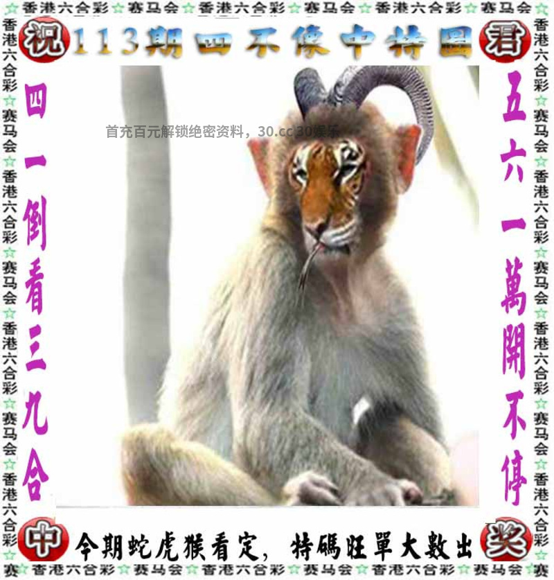 | 113期:开蛇13准 ①绝杀三肖:马狗鸡 ②解六肖:蛇虎猴牛猪龙 |